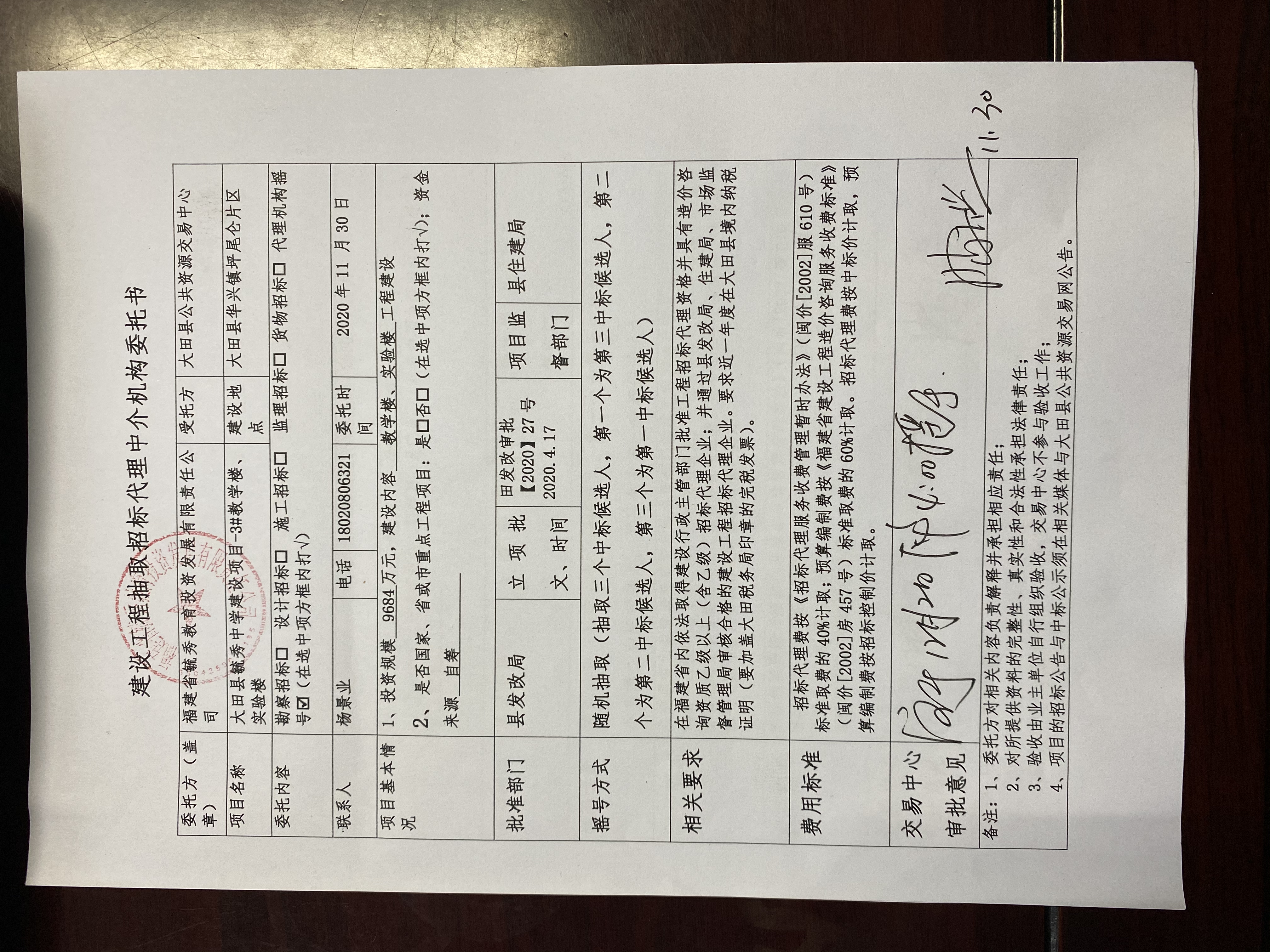 大田县毓秀中心建设项目-3#教学楼、实验楼采购公告