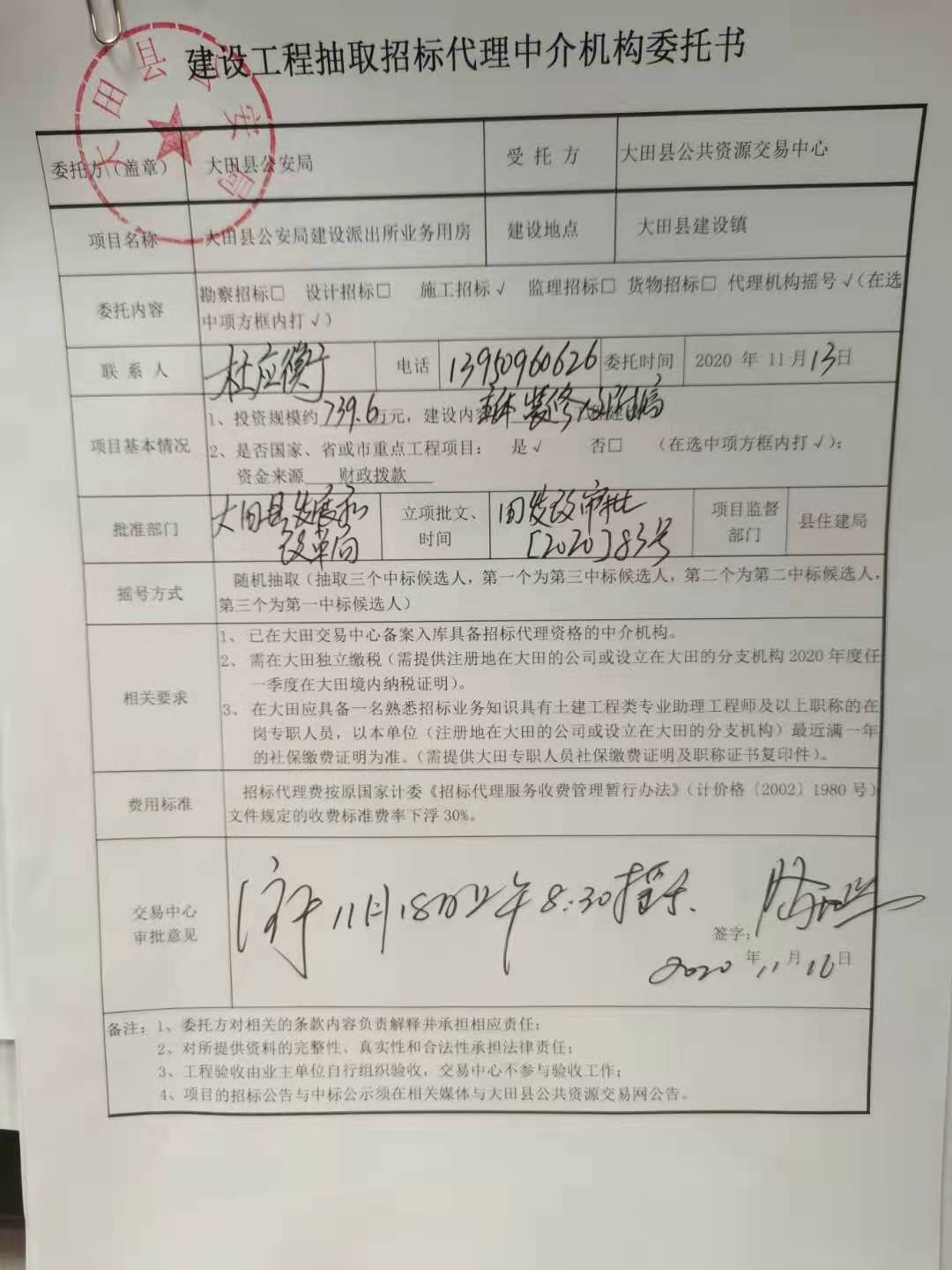 大田县公安局建设派出所业务用房项目摇号公告